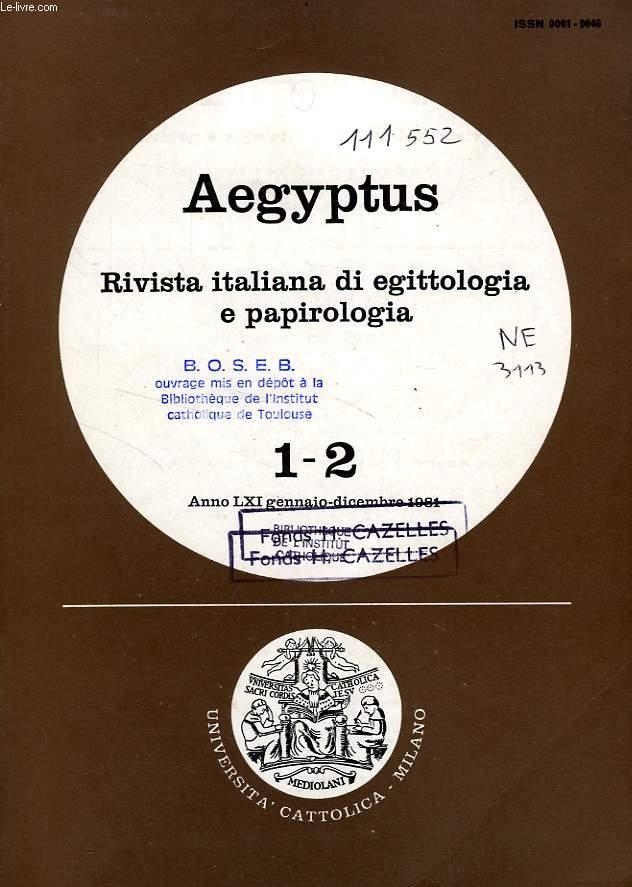 AEGYPTUS, RIVISTA ITALIANA DI EGITTOLOGIA E DI PAPIROLOGIA, ANNO LXI, FASC. 1-2, GENNAIO-DIC. 1981