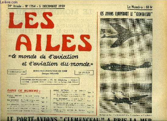 LES AILES - 39e ANNEE N° 1754 - Réseau intérieur par Georges Houard, De Seattle a Paris, sans escale, avec le Boeing-707 par Guy Michelet, Vers un déclin de notre puissance aérienne ? par Jean Romeyer, La formation des pilotes de ligne, Les crédits