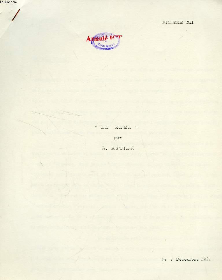 ANNEXE XII, 'LE REEL'