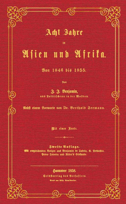 Add to basket-XIV, 314 Seiten, 6 S. Subskribenten-Verzeichnis-Mit 1 Karte --- Israel Joseph Benjamin:Acht Jahre in Asien und Afrika von 1846 bis 1855Von I. J. Benjamin aus Foltitscheny an der MoldauNebst einem Vorworte von Dr. Berthold SeemannZweite AuflageMit vergleichenden Notizen aus Benjamin de Tudela, R. Pethachia, Pedro Teixeira und Ritter's Erdkunde Verlagsfrischer, bibliophil ausgestatteter Faksimile-Reprint:Gedruckt auf einem schönen alterungsbeständigen und säurefreien Werkdruckpapier, das den Originaleindruck am besten wiedergibt.Gebunden als robuste Bibliotheksversion in Ganzleinen mit Rückengoldprägung.Bibliophil ausgestattet mit rundem Rücken und Lesebändchen.Ein dem Stil der Zeit entsprechender Umschlag wurde auf dem Vorderdeckel aufgezogen. --- 21,0 x13,5 cm.