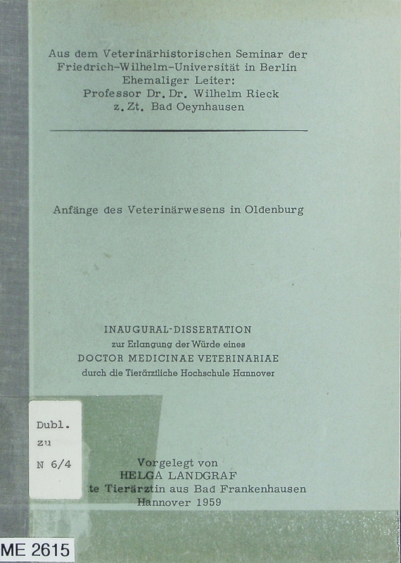 Anfänge des Veterinärwesens in Oldenburg.