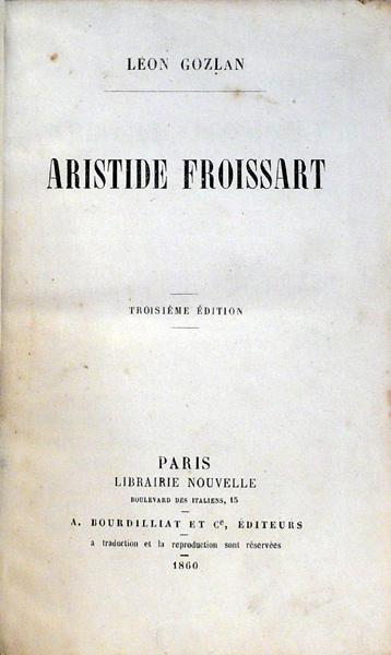 Add to basketLibrairie Nouvelle, A. Bourdilliat et Cie Editeurs Paris, 1860, in-12 demi-chagrin bleu nuit, 5 nerfs, filets dorés sur les nerfs, fers dorés entourés de double filets dorés.initiales J.Y en queue. Mention de troisième édition. Petite déchirure sans manque pp.81. Un feuillet fortement taché et bruni sinon quelques rousseurs.