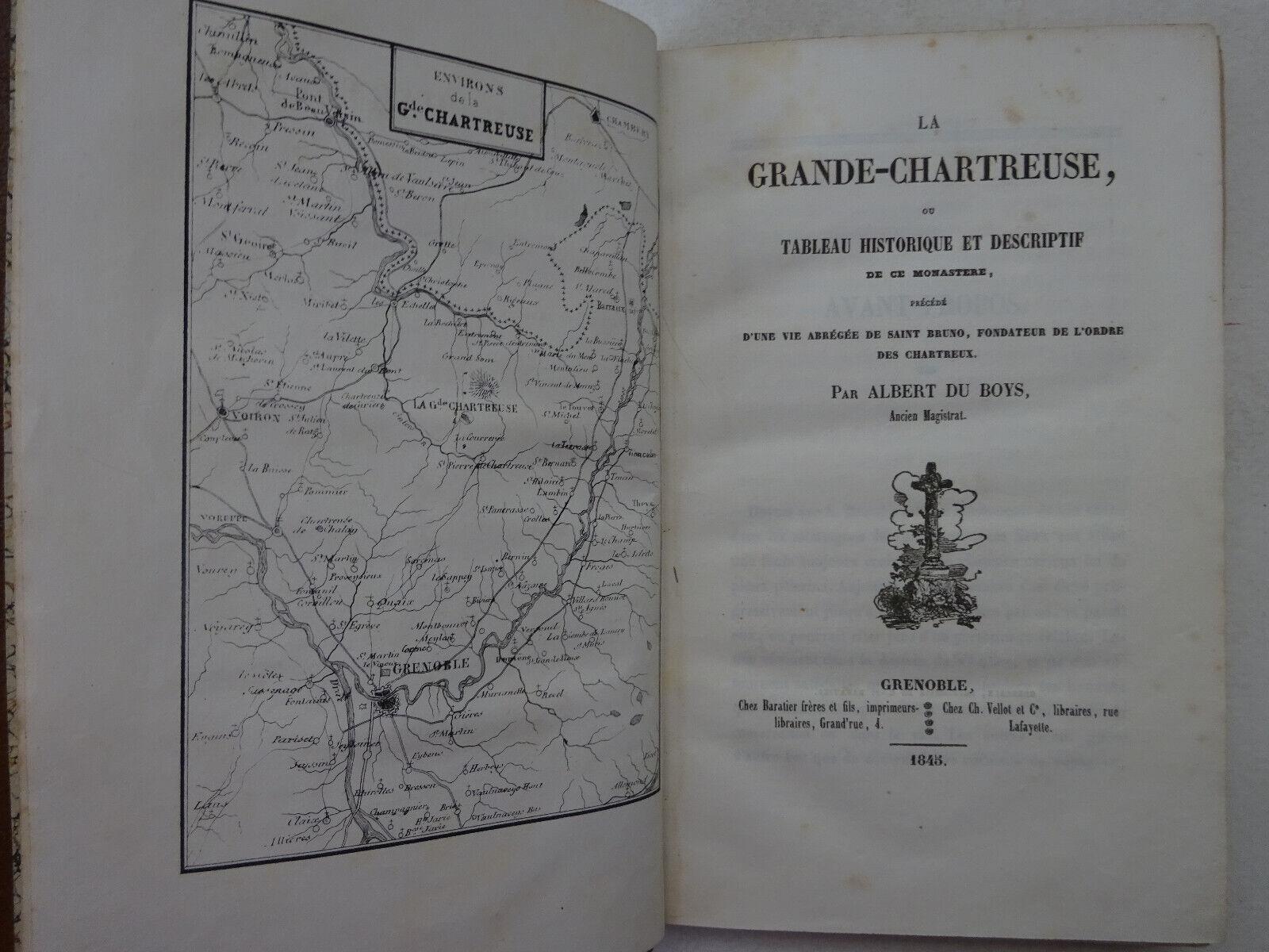 Add to basketLivre DU BOYS (Albert). La Grande Chartreuse, ou Tableau historique et descriptif de ce monastère, précédé d'une vie abrégée de Saint Bruno, fondateur de l'ordre des Chartreux. Grenoble, chez Baratier et fils & chez Ch. Vellot et cie (1848). 1 volume in-8 de 218 pages, frontispice et7 planches hors texte (1 carte topographique et 7 gravures en lithographie), reliure en demi-basane marron, dos à nerfs. Quelques frottements, sursaut d'un cahier. Couverture rigide/couverture reliée.