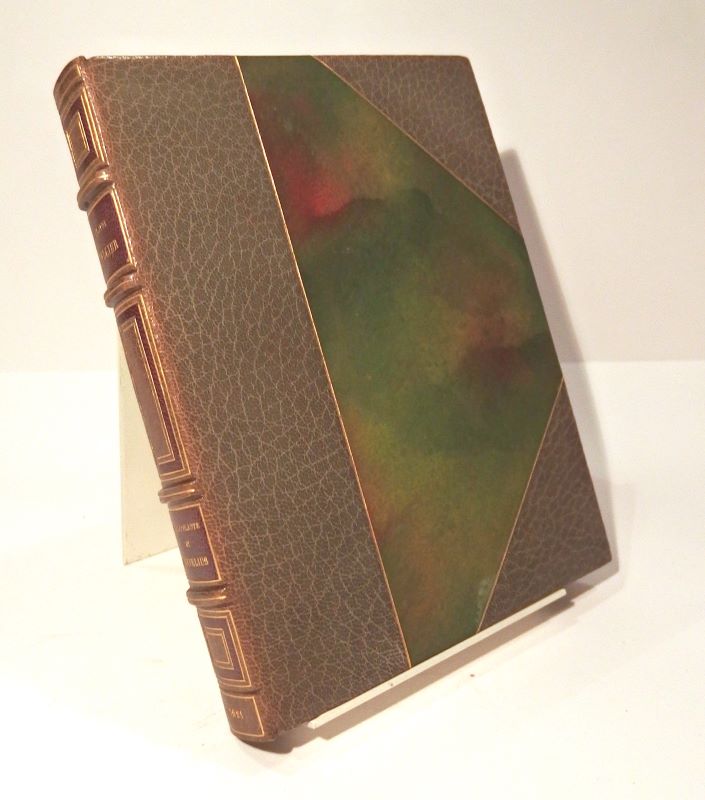 Add to basketParis, chez A. & G. Mornay (coll. "Les beaux livres"), 1921. In-8, 289 pp., demi-maroquin vert sauge à coins, dos à nerfs mosaïqué, date en pied, tête dorée, non rogné, couverture et dos conservés (Lib. J. Platrier). (Dos et haut des plats insolés.) Frontispice, in-texte, bandeaux, lettrines et culs-de-lampe en noir et brun, gravés sur bois par Deslignières. Un des 960 sur Rives. * Voir photographie(s) / See the picture(s). * Membre du SLAM et de la LILA / ILAB Member. La librairie est ouverte du lundi au vendredi de 14h à 19h. Merci de nous prévenir avant de passer,certains de nos livres étant entreposés dans une réserve.