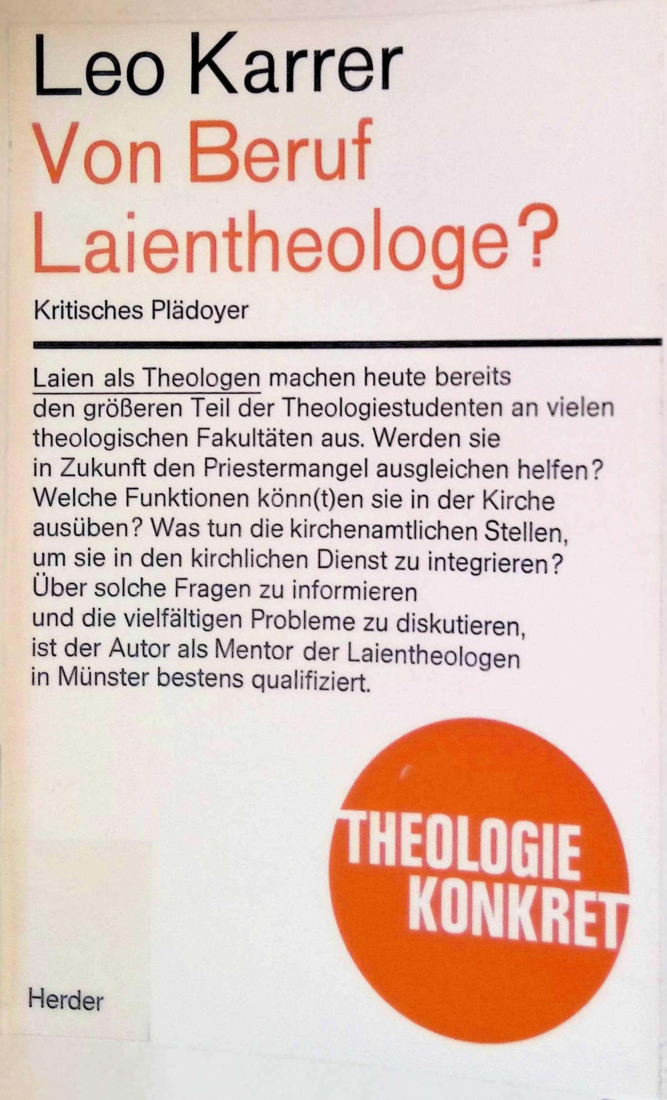 Von Beruf Laientheologe? : Kritisches Plädoyer. Theologie Konkret.