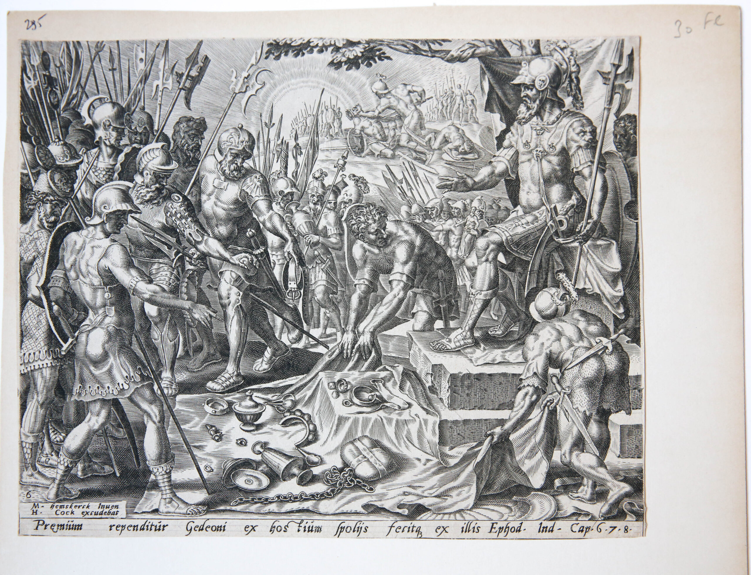 Biblical print: Gideon receiving a share from the spoils [Judg. 8:21-26]