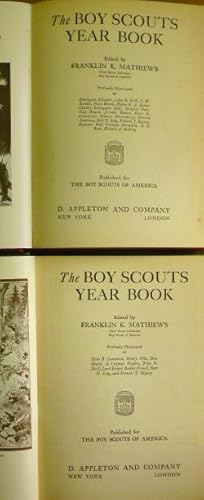 Add to basketThese 7.75 x 10.25 inch, volumes are two of the ongoing Boy Scout Yearbooks as published by the Boy Scouts of America. These two yearbooks date from 1929 and 1930, and are both in near fine condition. The 1929 yearbook with it's red-cloth over boards has the gilt lettering on the front panel still clean and bright and the black printing on the spine with the Boy Scout emblem. There is a touch of discoloration to the front edges of the cover and just a bit of corner wear but beyond that the 1929 yearbook is in remarkably nice condition. The interior text pages show virtually no handling or age damage with only a bit of browning to the pages to mention. The 1930 yearbook again has bright gilt lettering to the front and spine on the green cloth covers. There is five very small white specks on the front panel and again some bit of corner wear but again, the overall condition of this book is remarkable. The is an inked one-word name on the ffep but beyond that the text pages are in fine condition with again only a bit of browning. Both books publish short stories and information articles by numerous authors and probably some of the material may have been initially printed in the Boys Life magazine. There are numerous illustrations that are sprinkled throughout the text from various artists. These two books are beautiful in their presentation of entertaining and informative stories from the heyday of the Boy Scouts of America, when that organization was amongst the most popular youth group in the United States. N/A pages.