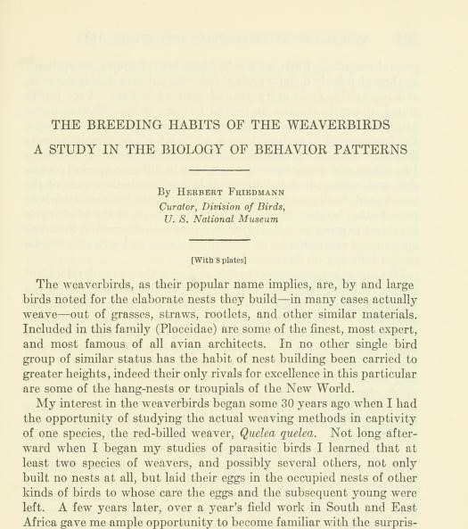 The Breeding Habits Of The Weaverbirds: A Study In The Biology Of Behavior Patterns