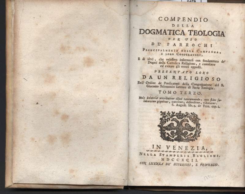 COMPENDIO DELLA DOGMATICA TEOLOGIA per uso de' parrochi principalmente della campagna e loro cooperatori-Tomo III-(1792)