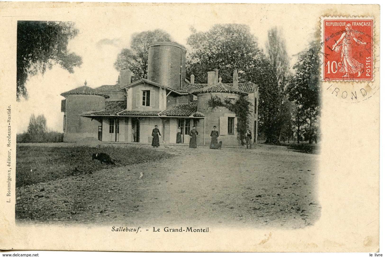 CPA 33 SALLEBOEUF. CARTE EN GRANDE PARTIE DEDOUBLEE. LE GRAND-MONTEIL1908