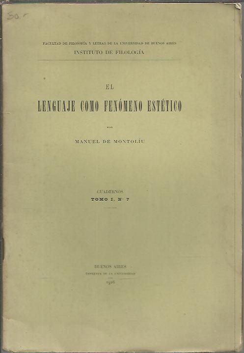 CUADERNOS. TOMO I. N. 7. EL LENGUAJE COMO FENOMENO ESTETICO.