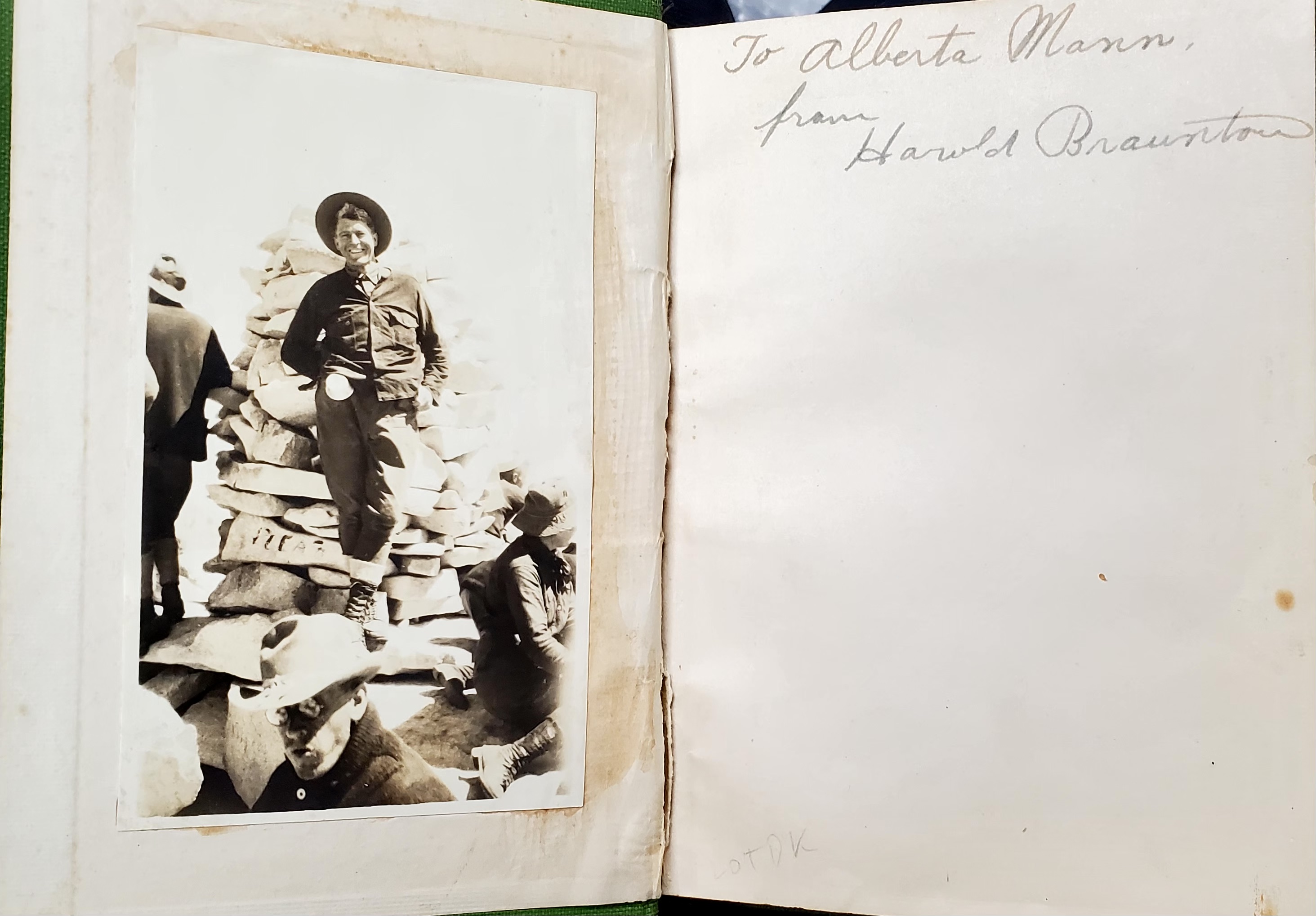 First edition. Twelvemo (3 3/4 x 5 3/4 inches). [vi], 179, [1] pp. Publisher's green cloth with lettering in black on front and spine. A very good copy.This copy is inscribed by Braunton to an Alberta Mann and the front pastedown bears an original photograph of the rugged author leaning against a large cairn. Harold was a San Francisco resident and quite the inventor; he held at least two patents for automobile parts. The first essay concerns a hile in the Sierra Nevasda Mountains (no doubt the site of the photograph). This book, in essence, is a collection of diatribes about how to make one's way in the world. Some are quite prescient, others just strange.
