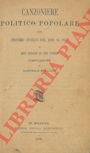 Canzoniere politico popolare con proemio storico dal 1820 al 1870 e brevi biografie dei poeti prescelti.