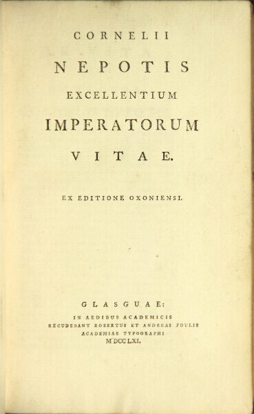 Cornelii Nepotis excellentium imperatorum vitae. Ex editione Oxoniensi