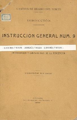 DIRECCION - INSTRUCCION GENERAK NUM. 9 , SOBRE INETERVENCION Y CONTABILIDAD DE LA PERCEPCION - EDICION DE 1909 -