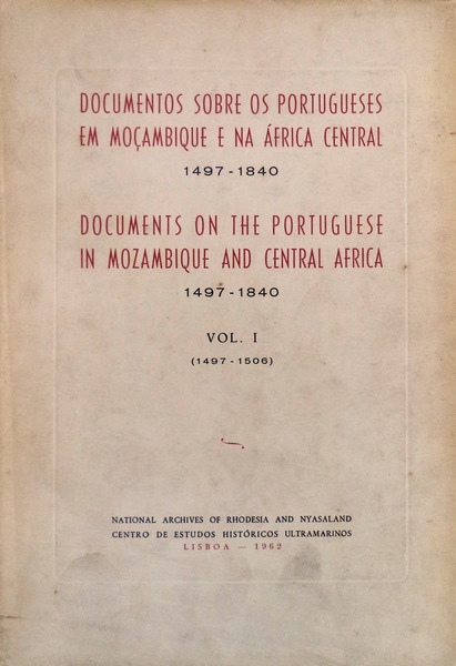 DOCUMENTS ON THE PORTUGUESE IN MOZAMBIQUE AND CENTRAL AFRICA. VOL. I 1497 ? 1506) [a VOL. IX (1589 ? 1615)], Lisboa. National Archives of Rhodesia and Nyasaland. Centro de Estudos Históricos e Ultramarinos. 1962 [1989] 8 Volumes de 25x18 cm. Com xxxvi, 832, [i]; xxviii, 662, [i]; xiv, 604, [ii]; xxii, 623, [i]; xiv, 510, [i]; xvi, 580, [i]; xx, 613, [i]; xxxii, 498, [i] págs. Encadernações do editor em percalina, com títulos gravados a ouro nas lombadas e sobrecapas de protecção. Ilustrado em extratexto sobre papel couché. No vol. VIII com o retrato de Manuel Guilherme Freire de Andrade. Exemplar com danos nas sobrecapas de protecção, nomeadamente nas coifas, Volume III com perda de papel na sobrecapa de protecção no pé da lombada, Volume I, III, V, VIII e IX com carimbo oleográfico da Biblioteca da Universidade Católica Portuguesa na folha de rosto, Volume I e IX com tabela de empréstimo da biblioteca na folha de guarda posterior, Volume V com carimbo oleográfico de oferta do Centro de Estudos Históricos na folha de anterrosto. Falta o segundo volume. Obra impressa com muita nitidez sobre papel de excelente qualidade. Todos os volumes incluem índices dos documentos e índices onomásticos, geográficos e ideográficos. O volume IX e último foi publicado pelos National Archives of Zimbabwe, Universidade Eduardo Mondlane e Centro de Estudos de História e Cartografia Antiga do Instituto de Investigação Científica e Tropical. O volume I contém prefácio de A. Da Silva e Rego e T. W. Baxter. O volume VIII contém texto em memória de Manuel Guilherme Freire de Andrade (1909-1971), tradutor de grande parte dos documentos para inglês, da autoria de Silva Rego e E. E. BurKe. O volume IX contém nota introdutória de Luís de Albuquerque e Prólogo (Foreword) de Angeline S. Kamba dos Arquivos Nacionais do Zimbabwe. Importante trabalho de edição de preciosas fontes para a história de Portugal, de Moçambique e dos países limítrofes, disponibilizando aos estudiosos a edição rigorosa e fiel de 642 documentos produzidos entre 1497 e 1615, acompanhados de excelentes traduções em inglês. Os documentos estão custodiados em diversos arquivos e bibliotecas de diversos países com destaque para a Torre do Tombo. Obra completa e não disponível em mais nenhuma edição. 25x18 cm. 9 Volumes: xxxvi, 832, [i]; xxviii, 662, [i]; xiv, 604, [ii]; xxii, 623, [i]; xiv, 510, [i]; xvi, 580, [i]; xx, 613, [i]; xxxii, 498, [i] pp. Binding: Editor?s binding in percaline, gilt titles on spine and dust covers. Illustrated hors-text in glazed paper. In volume VIII with the portrait of Manuel Guilherme Freire de Andrade. Very clear printing on excellent quality paper. All the volumes include onomastic, geographic and ideographic indexes. Volume IX, and last, was published by the National Archives of Zimbabwe, Eduardo Mondlane University and Centre of Studies of History and Ancient Cartography of the Institute of Scientific and Tropical Research [Instituto de Investigação Científica e Tropical]. Volume I contains a foreword by A. Da Silva e Rego and T. W. Baxter. Volume VIII contains the text in memory of Manuel Guilherme Freire de Andrade (1909-1971), translator of the most part of the documents into English, written by Silva Rego and E.E. BurKe, The volume IX contains an introductory note by Luís de Albuquerque and a Foreword by de Angeline S. Kamba of the National Archives of Zimbabwe. An important editing work of precious sources of the history of Portugal, Mozambique and surrounding countries, making available for scholars the thorough and faithful edition of 642 documents, issued between 1497 and 1615, together with excellent English translations. The original documents belong to several archives and libraries of different countries, mainly Torre do Tombo [Portuguese National Archives]. Complete work and not available in any other edition. Esta obra pesa mais de 5 kg e está sujeita a custos extra de envio. This work weights more than 5kg. It is subjet to extra shipping cos. Seller Inventory # 1607PG001