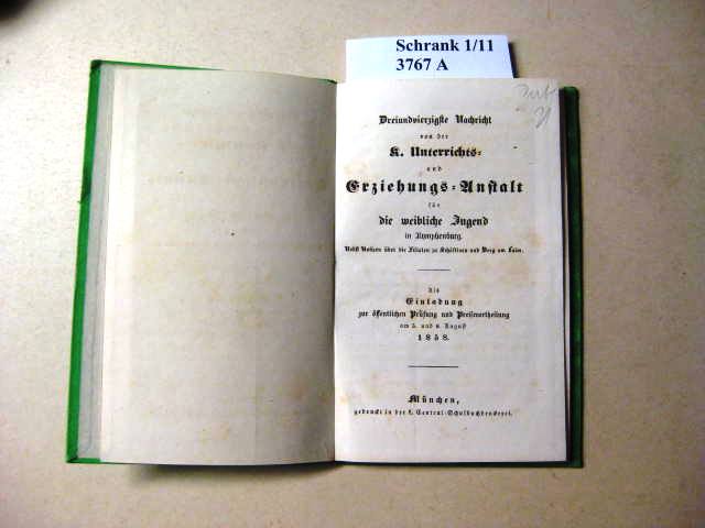 Dreiundvierzigste Nachricht von der königlichen Unterrichts- und Erziehungs-Anstalt für die weibliche Jugend in Nymphenburg. Als Einladung zur öffentlichen Prüfung und Preisverleihung am 5. und 6. August 1858.