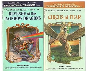 Titles include: Revenge of the Rainbow Dragons. An Endless Quest Book #6. 2nd printing, April 1983. 0880380217. 157 pages / Circus of Fear. An Endless Quest Book #10. 1st printing, July 1983. 0880380373. 157 pages / Both volumes: Some discoloration to pages. Some wear along the edges, tips, and along the spine. Some rubbing wear to covers. ONLY SOLD AS A SET. Seller Inventory # 115802