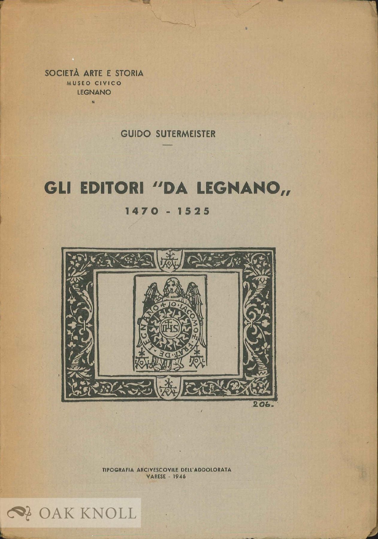 Published by Societá Arte e Storia, Legnano, 1946