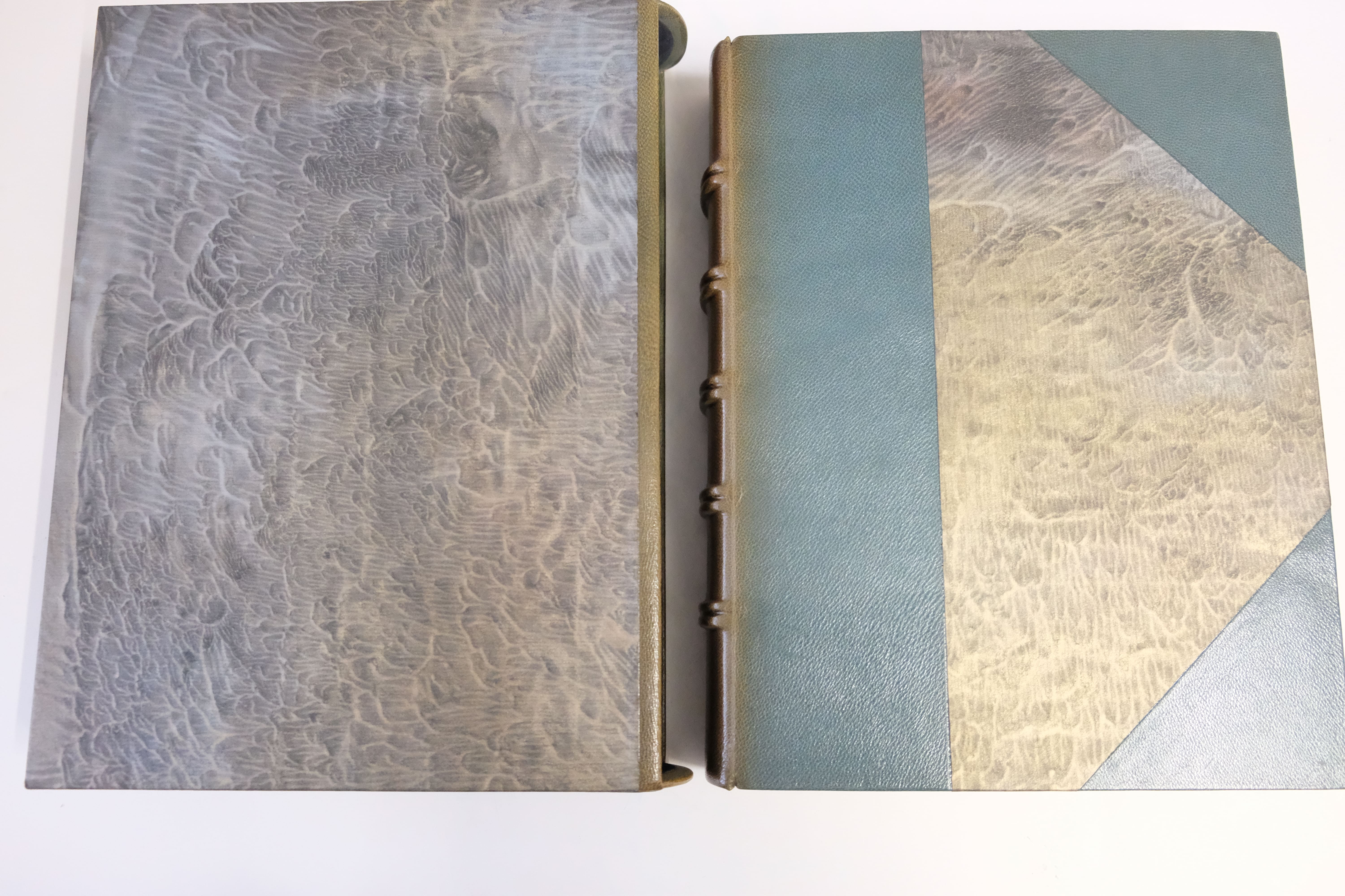 Add to basketParis, Editions Marpon & Cie, 1929, 1 volume in-4 de 295x235 mm environ, 256 pages, 3 ff. (Notes, table, achevé d'imprimer), en feuillets libres sous chemise rempliée crème et emboîtage de l'éditeur brun mordoré. Tirage limié à 196 exemplaires numérotés. Celui-ci un des 45 sur hollande Van Gelder. Avec un frontispice, 17 vignettes en bandeaux, 11 hors-texte sur 17, en couleurs par Raoul SERRES, soit 29 illustrations sur 34, Texte agrémenté de 17 lettrines et 17 cul-de-lampes. Relié dos demi-cuir maroquin, cuir à coin, quelques épidermures peu nombreuses et de très légères rousseurs, le livre est quasi neuf.