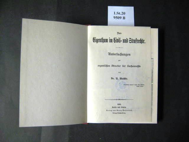 Das Eigenthum im Civil- und Strafrechte. Untersuchungen zur organischen Structur der Sachenrechte.