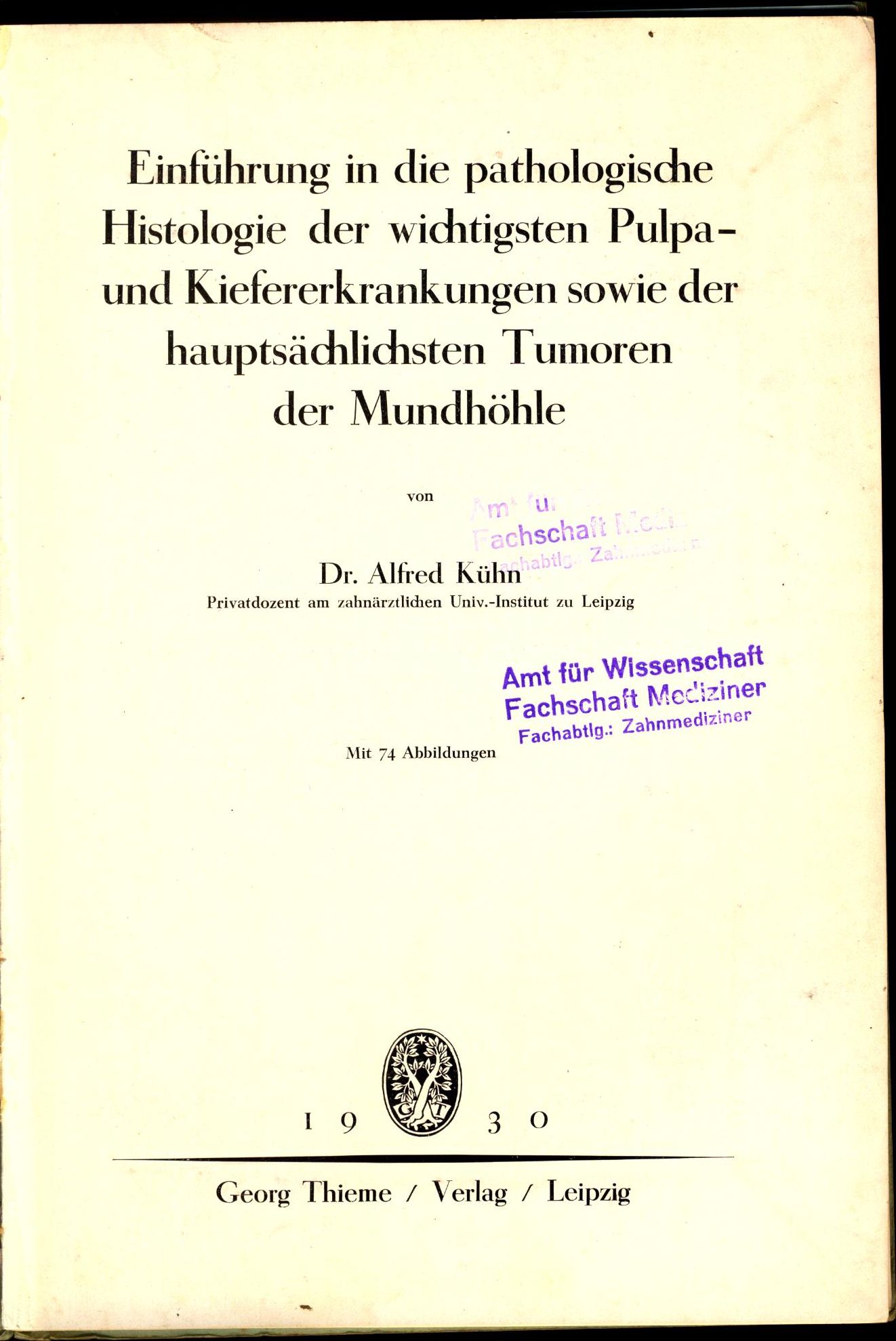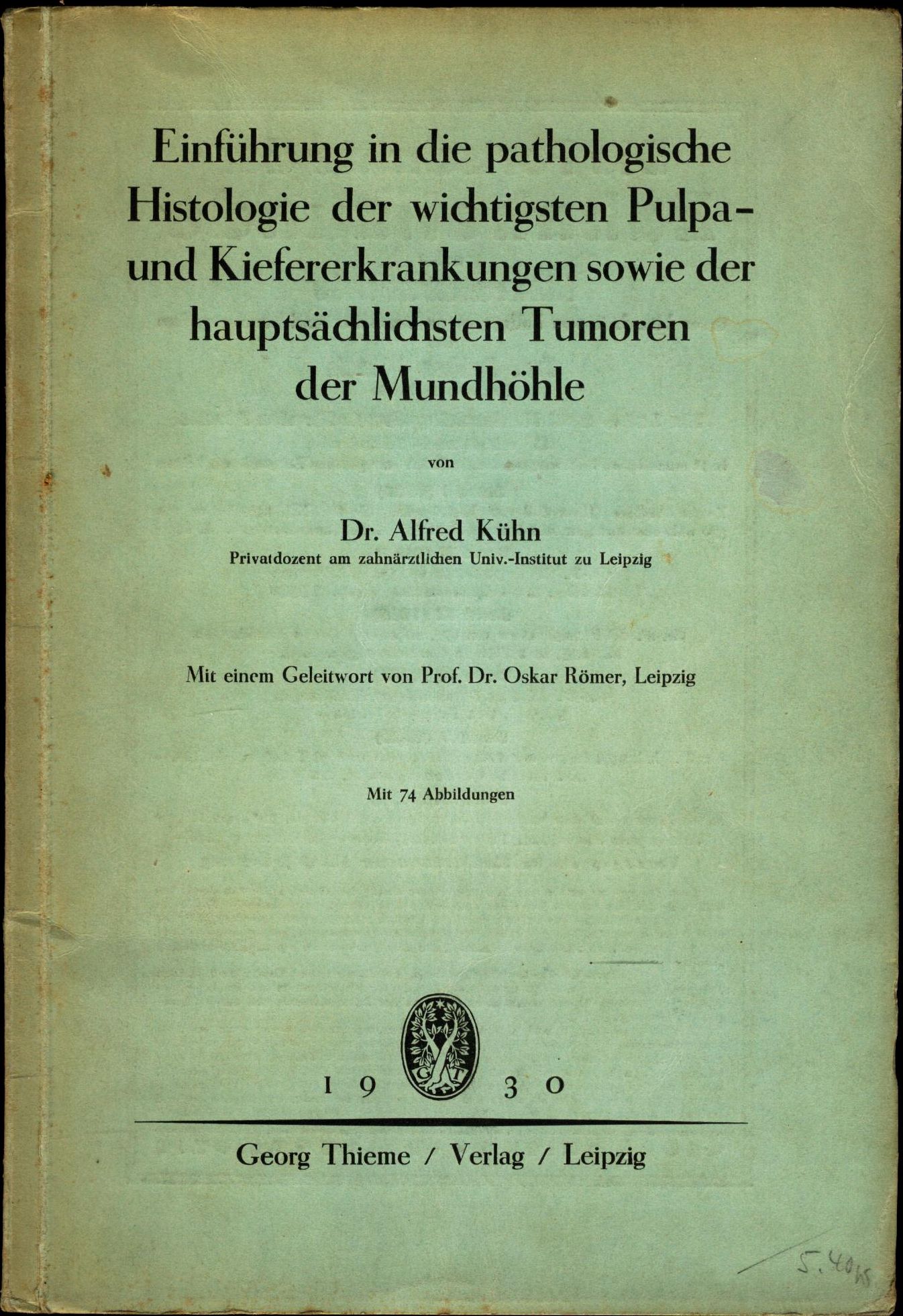 Einführung in die pathologische Histologie der wichtigsten Pulpa- und Kiefererkrankungen sowie der hauptsächlichsten Tumoren der Mundhöhle Mit einem Geleitwort von Prof. Dr. Oskar Römer, Leipzig