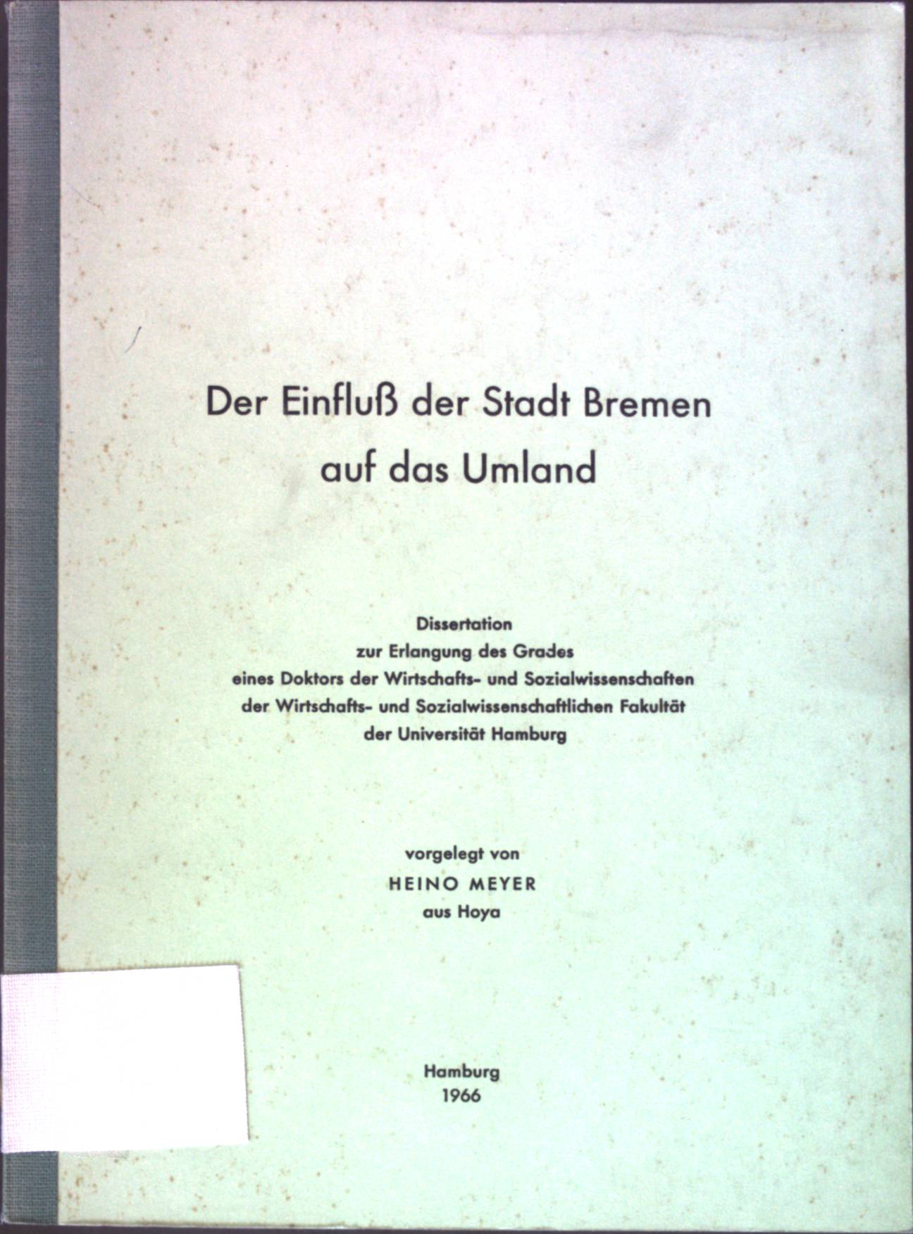 Der Einfluß der Stadt Bremen auf das Umland Dissertation