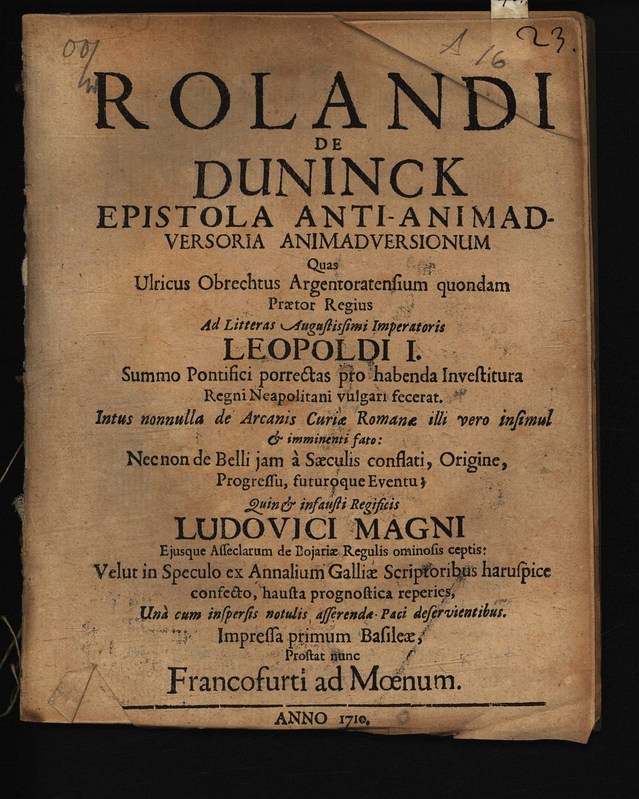 Epistola anti-animadversoria animadversionum, quas Ulricus Obrechtus Argentoratensium . ad litteras . Leopoldi I. . fecerat Basilae [1704]