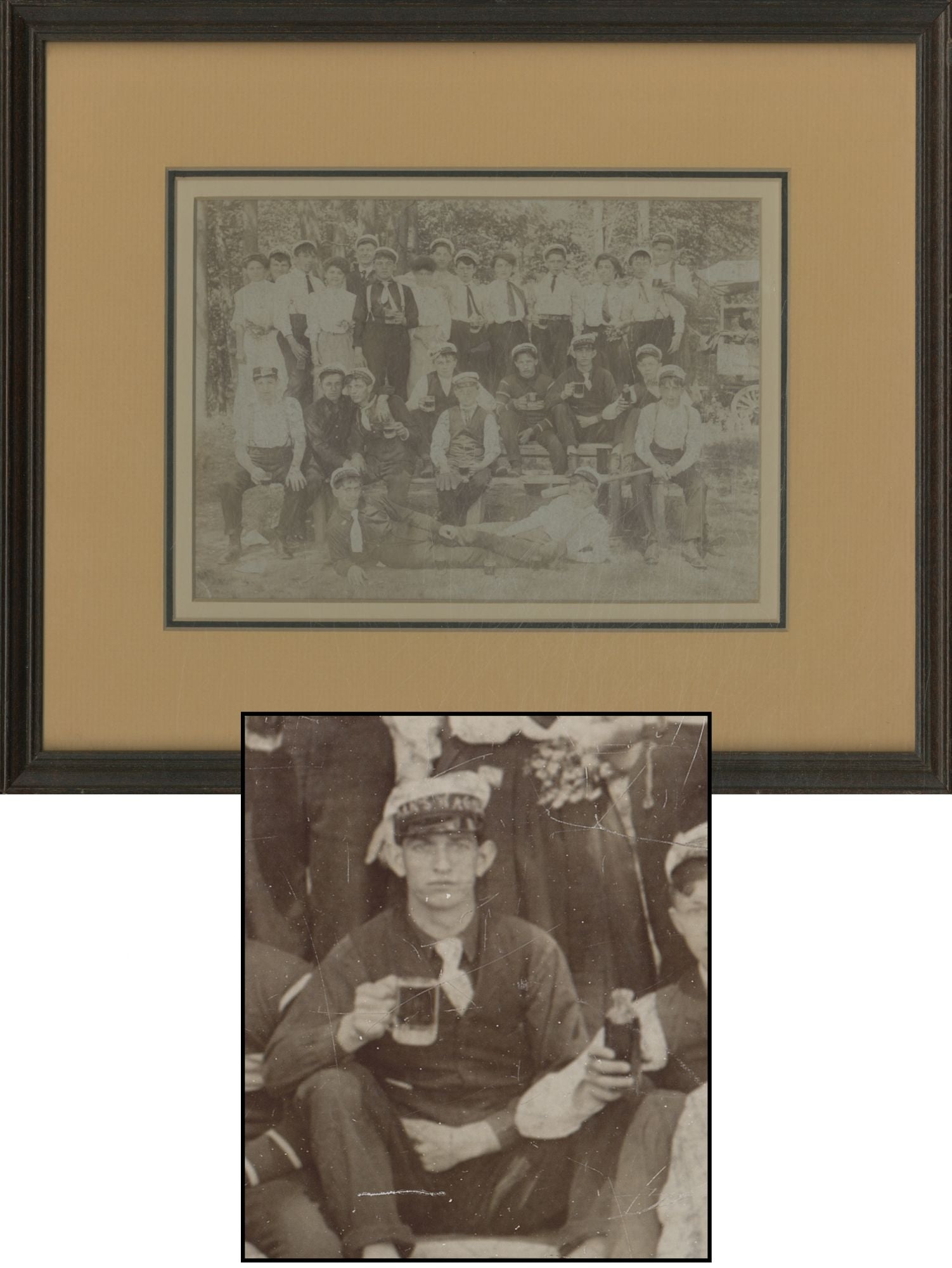 Framed Vintage Group Photograph of Baseball Outing