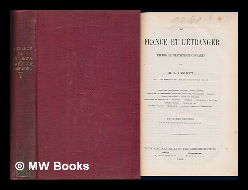 Add to basketFine copy in the original gilt-blocked cloth. Slightest suggestion only of dust-dulling to the panel edges. Remains particularly well-preserved overall; tight, bright, clean and strong. ; 668 pages; Description: 668p. Tables. 27 cm. Subjects: France -- Statistics. France --Economic conditions -- 19th century. 2 Kg. Item is Shipped from Ireland or US locations.