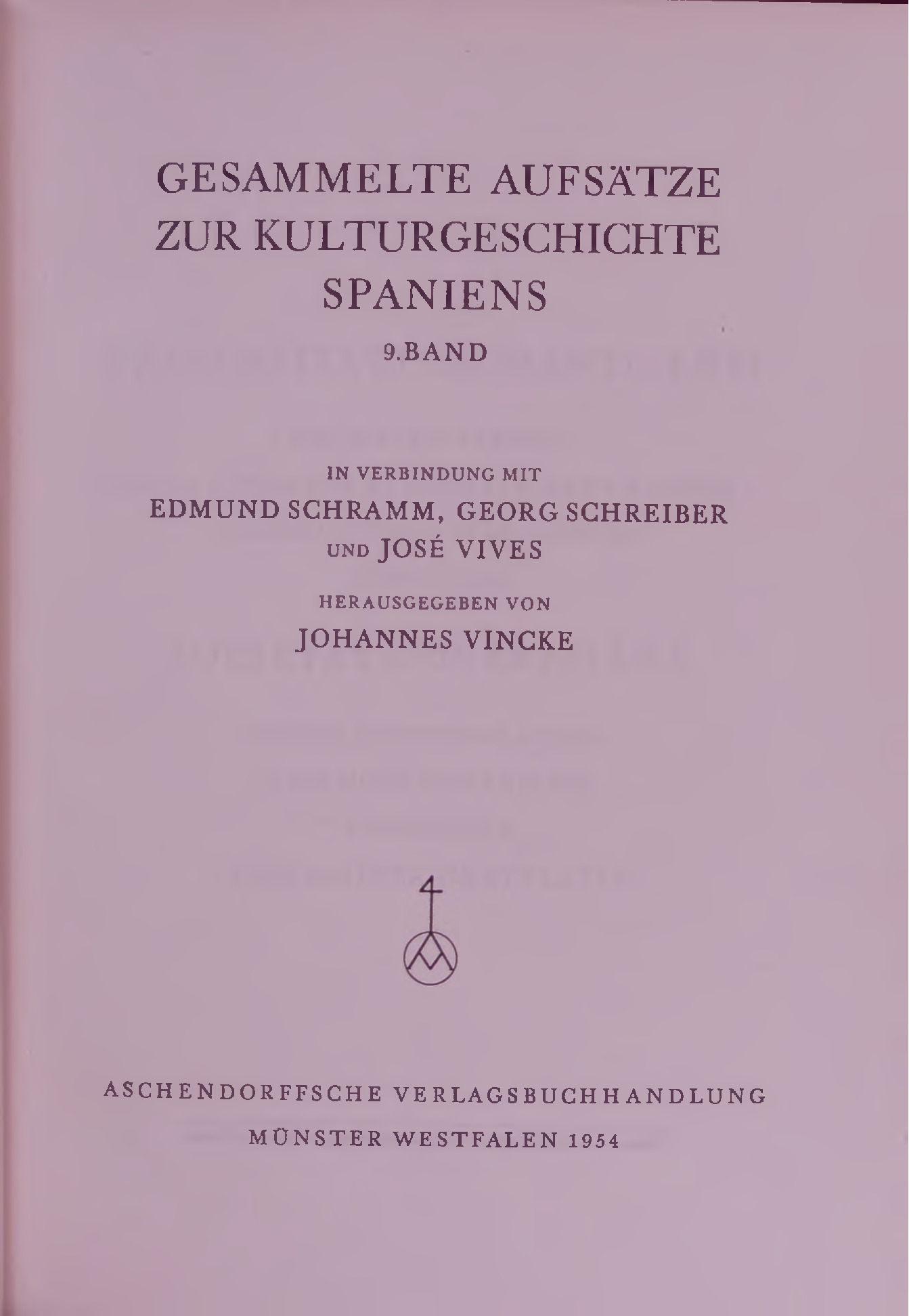 GESAMMELTE AUFSÄTZE ZUR KULTURGESCHICHTE SPANIENS. 9. BAND