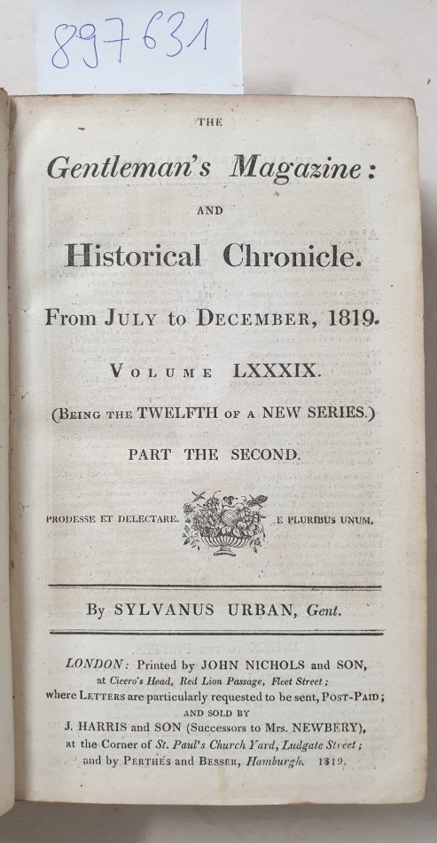 The Gentleman s Magazine: and Historical Chronicle (From July to December, 1819, Volume LXXXIX.) (Being the Twelfth of a New Series, Part Second)