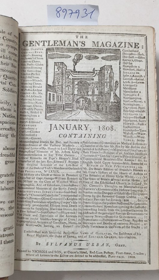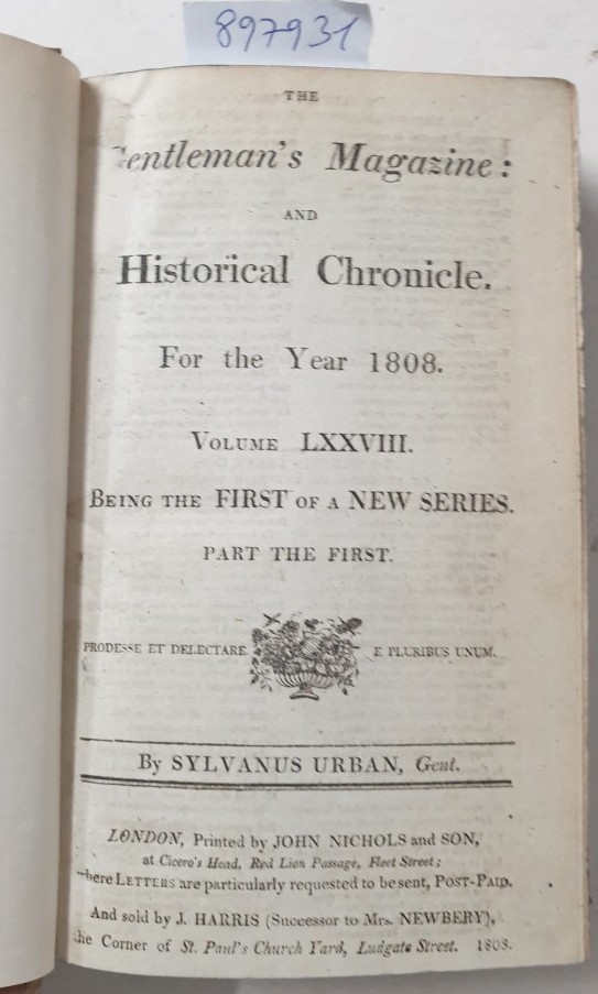 The Gentleman s Magazine : and Historical Chronicle : For the Year 1808 : Volume LXXXVIII : Part The First : (Being The First Of A New Series) :