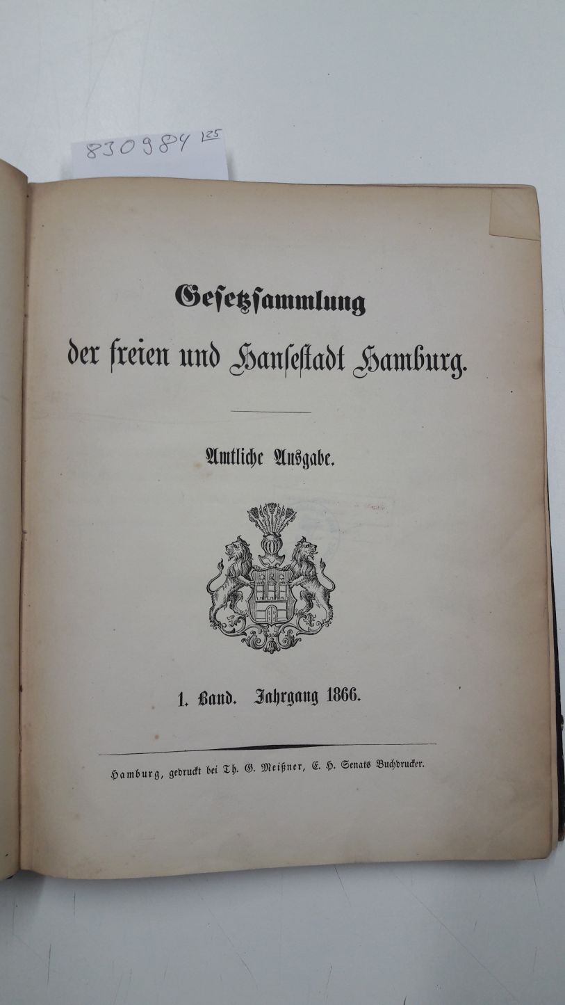 Gesetzsammlung der freien und Hansestadt Hamburg. Amtliche Ausgabe. Band 1 (1866) bis Band 25 (1888)