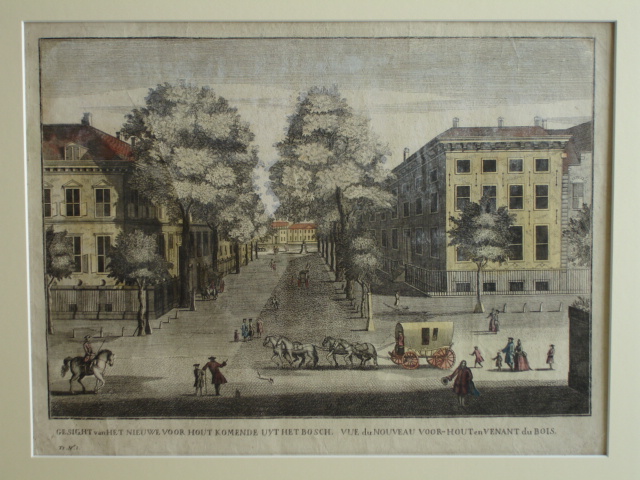 Gesight van Het Nieuwe Voor Hout komende uyt het Bosch. Vue du Nouveau Voor-Hout en Venant du Bois.