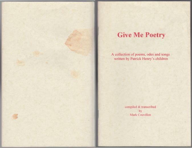 Give Me Poetry A Collection of Poems, Odes and Songs Written By Patrick Henry's Children