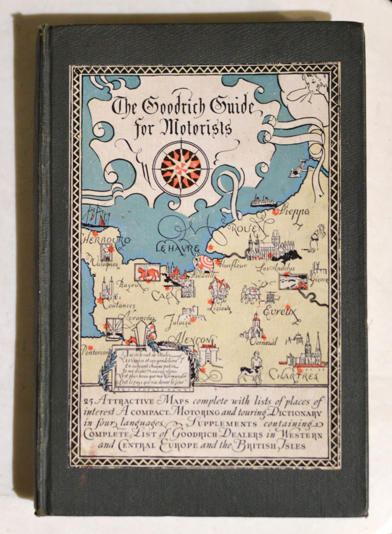 Société française B.F. Goodrich, 1930. Cartonnage in-8 de l'éditeur, 1er plat illustré en coul., 112 pp. Dos lisse toilé, muet. 25 cartes dessinées, dictionnaire pour automobilistes en 4 langues.