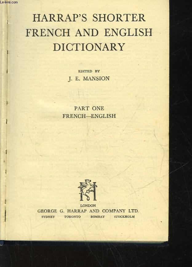 HARRAP'S SHORTER FRENCHE AND ENGLISH DICTIONNARY - PART ONE - FRENCH - ENGLISH