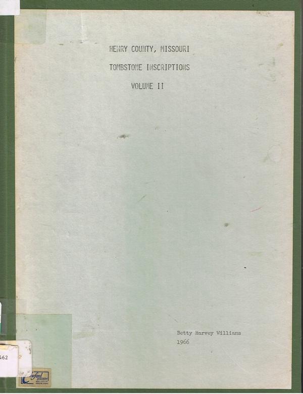 Henry County, Missouri Tombstone Inscriptions Volume II