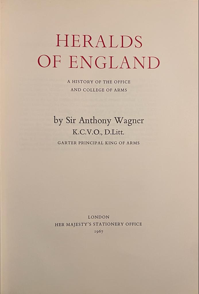 [Heraldry 1967] Heralds of Engeland, A history of the office and college of arms. London 1970, 609 pp.