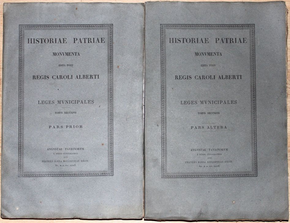 Historiae patriae monumenta edita iussu regis Caroli Alberti. Volume XVI/I (Pars prior) - Volume XVI/II (Pars altera). Leges municipales. (Due volumi)