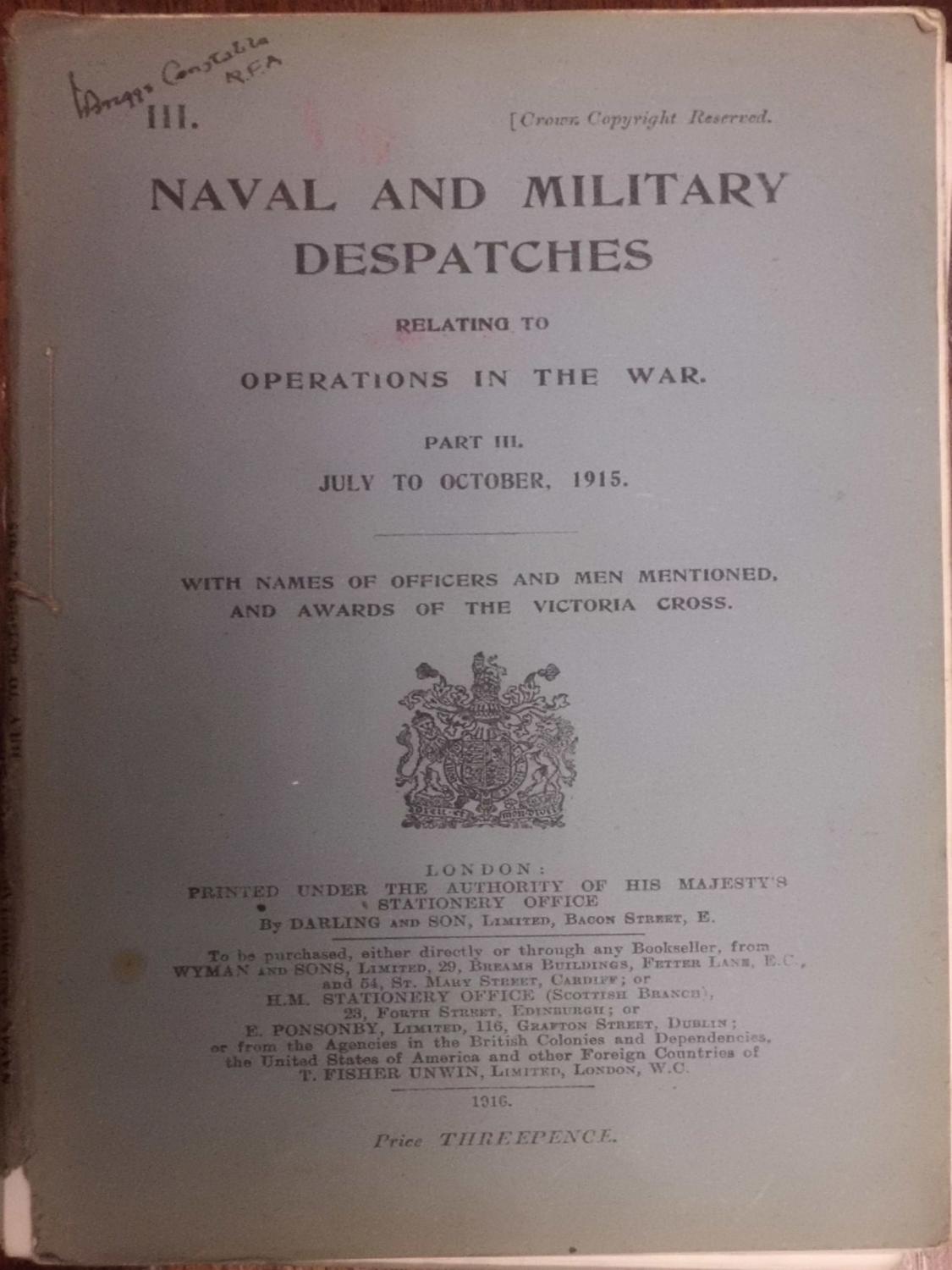 Title: III. Naval And Military Despatches Relating ...