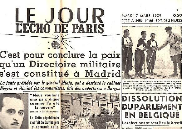 LE JOUR. L'ECHO DE PARIS. AÑO 7/55. N. 66. 7-MARZO-1939.