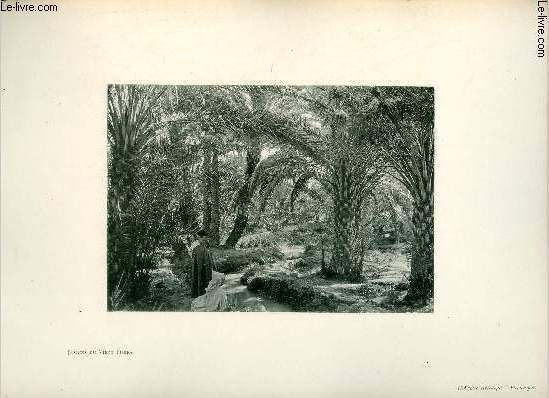 Jardins du vieux Biskra - Une photogravure en monochrome extraite de la revue mensuelle L'Algérie artistique et pittoresque (vers 1890).