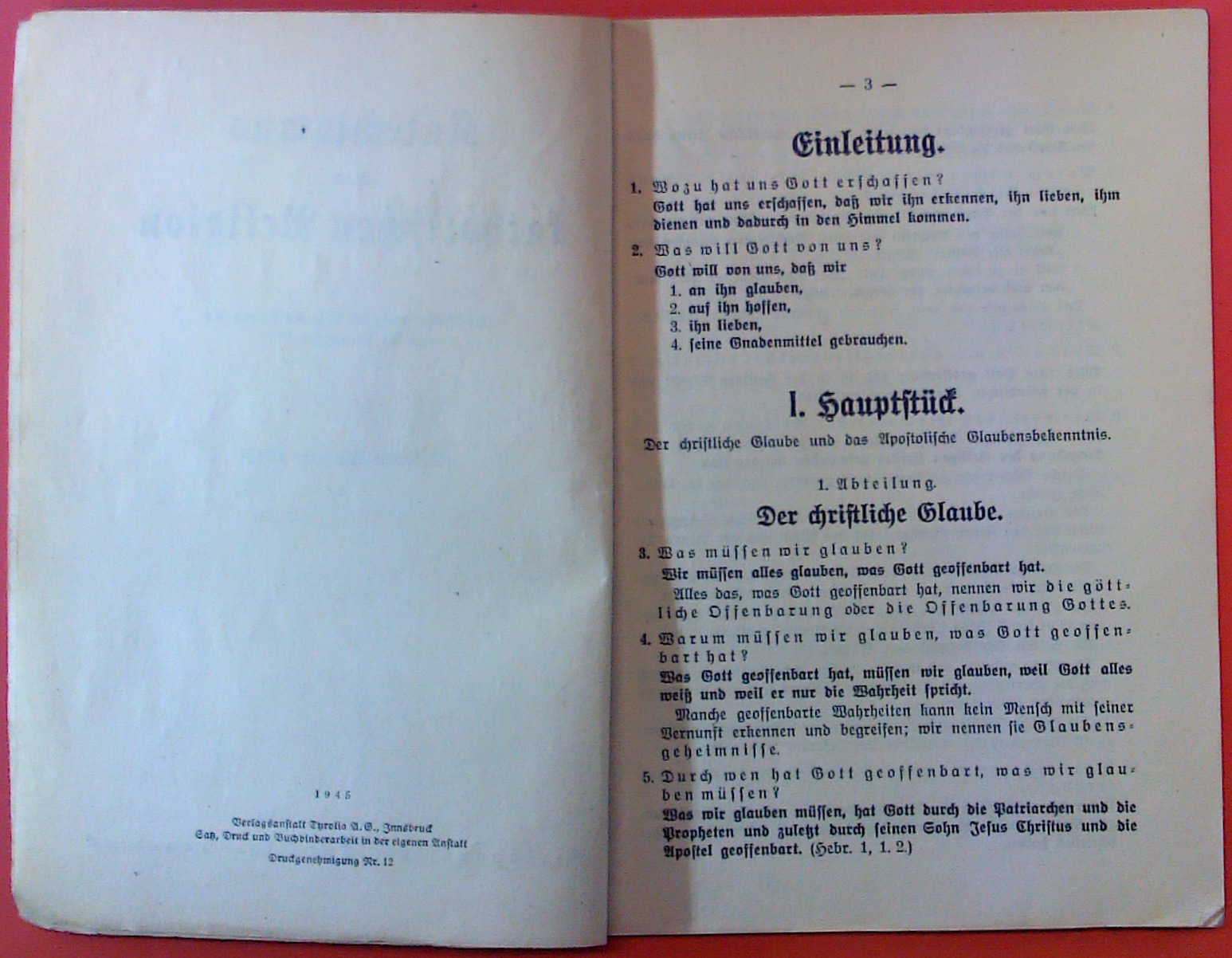 Katechismus der katholischen Religion. Gekürzte Ausgabe 1945.