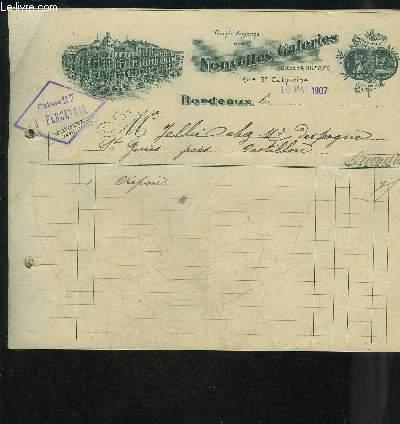 LOT DE 6 FACTURES DES GRANDS MAGASINS DES NOUVELLES GALERIES BORDEAUX - DATANT DE 1907 - DESTINEE A MONSIEUR GELLIE.