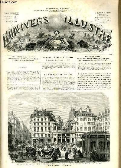 L'UNIVERS ILLUSTRE - DOUXIEME ANNEE N° 747 Démolition de l'ancien théâtre du Vaudeville, sur la place de la Bourse, pour le percement de la rue Réaumur; dessin de M. Bertrand