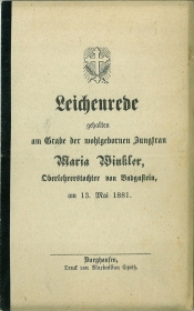 Leichenrede gehalten am Grabe der wohlgebornen Jungfrau Maria Winkler, Oberlehrerstochter von Badgastein, am 13. Mai 1881