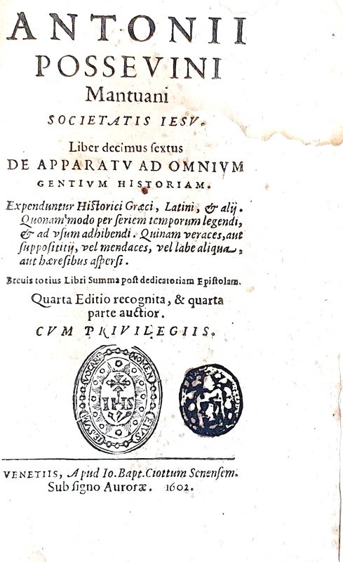 Liber decimus sextus De apparatu ad omnium gentium historiam. Expeduntur historici graeci, latini, & alii. Venetiis, apud Io. Bapt. Ciottum, 1602.
