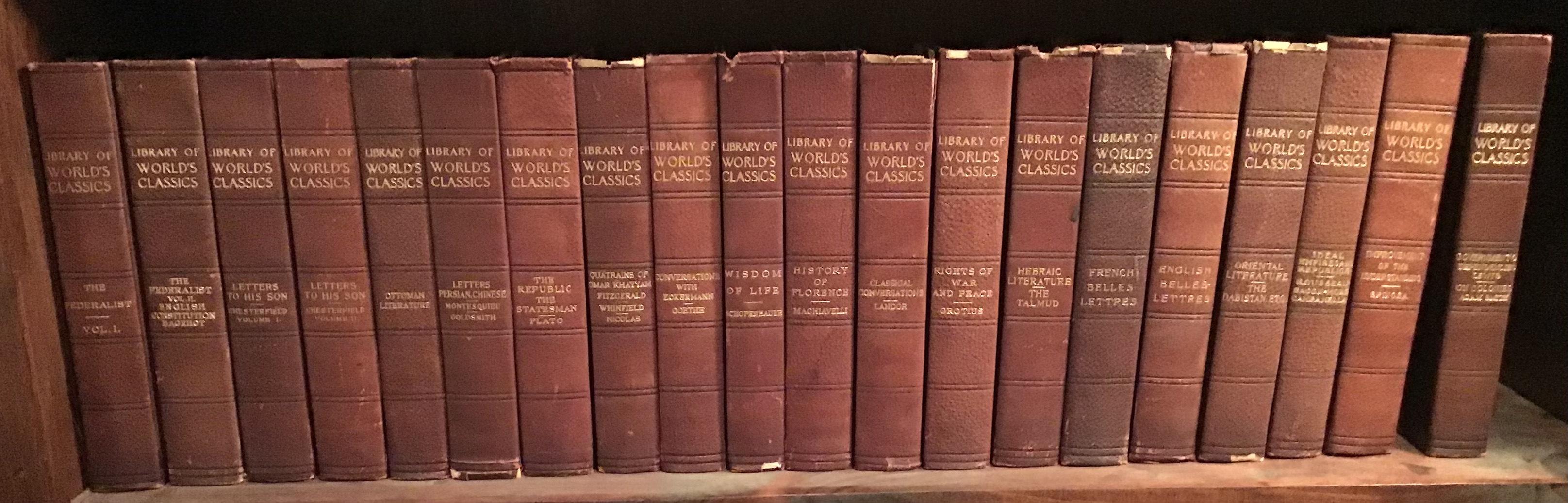 Add to basketA very scarce complete set of the Library of World's Classics in VERY GOOD condition. Some minor scuffs and edge wear on several volumes. Not a mark inside. These volumes, which are 6 x 9 inches, are illustrated with photogravures on Japanese vellum with hand painted reproductions and full page portraits of authors. Top edges gilt. Very minor sunning on spines. Text throughout is bright and clean and easily readable on heavy stock. Covers are half leather (including corners) with white marbled cloth. End papers marbeled. The entire set would take up about 30 inches of shelf space. If you would like a detailed description of each volume, please contact Shadetree Rare Books for details. This is a magnificent set of books--gorgeous shelf appearance as well as containing the world's best literature.